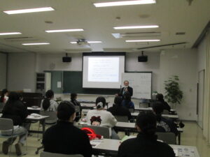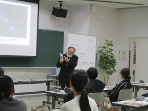 岩国YMCA保健看護専門学校の保健看護学科1年生23名を対象に、広島大学客員教授(医学博士)の田中公夫氏が講師となり、放射線教育を実施しました。 講義では、放射線に関する基礎知識や、看護職に必要な放射線治療や放射線被ばくの防護等について学んでいただきました。また教室の放射線量を実際に計測し、放射線が私たちの身近にあることを実感していただきました。